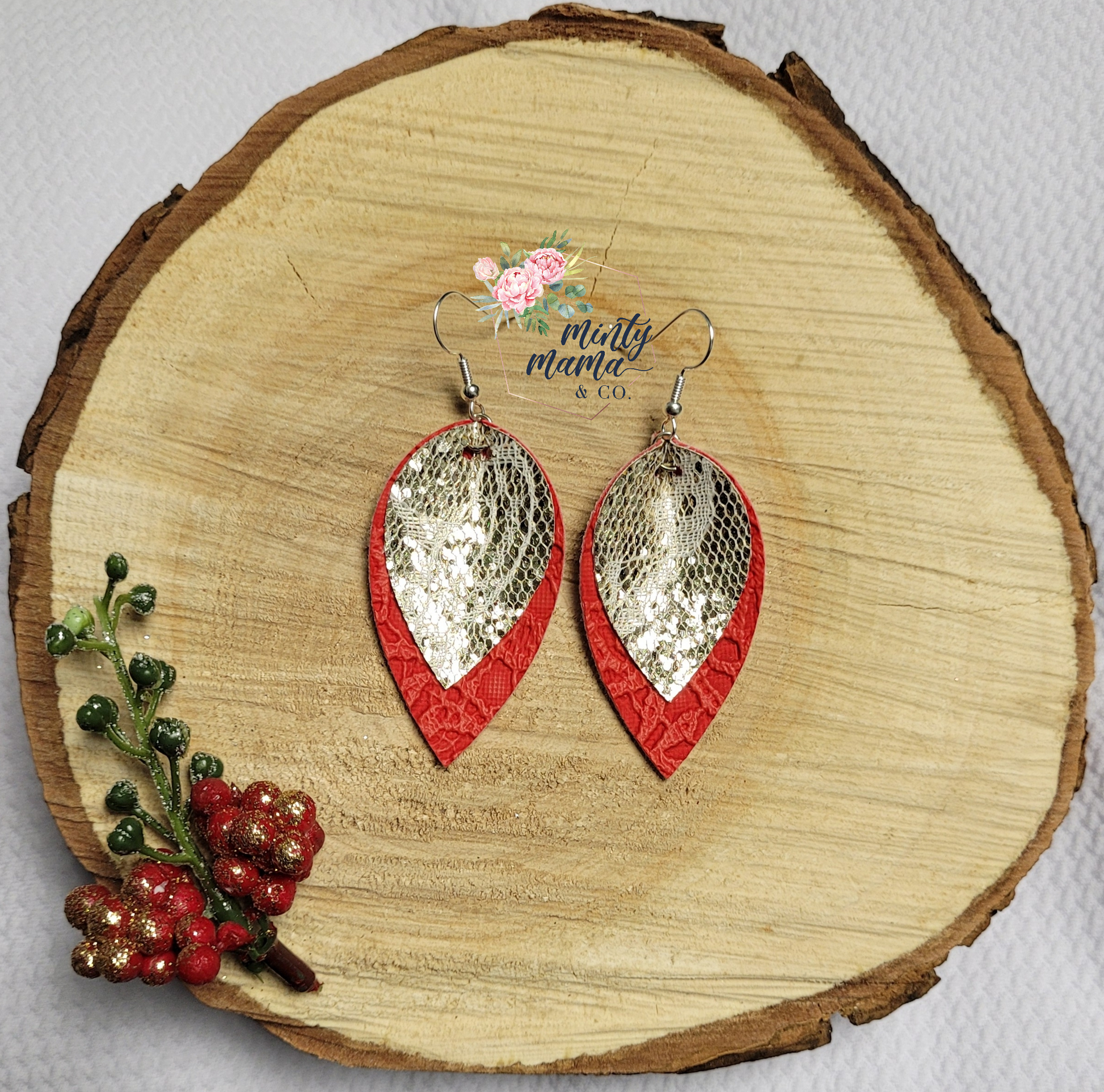 Made with Christmas red colored embossed lace and lace gold glitter.