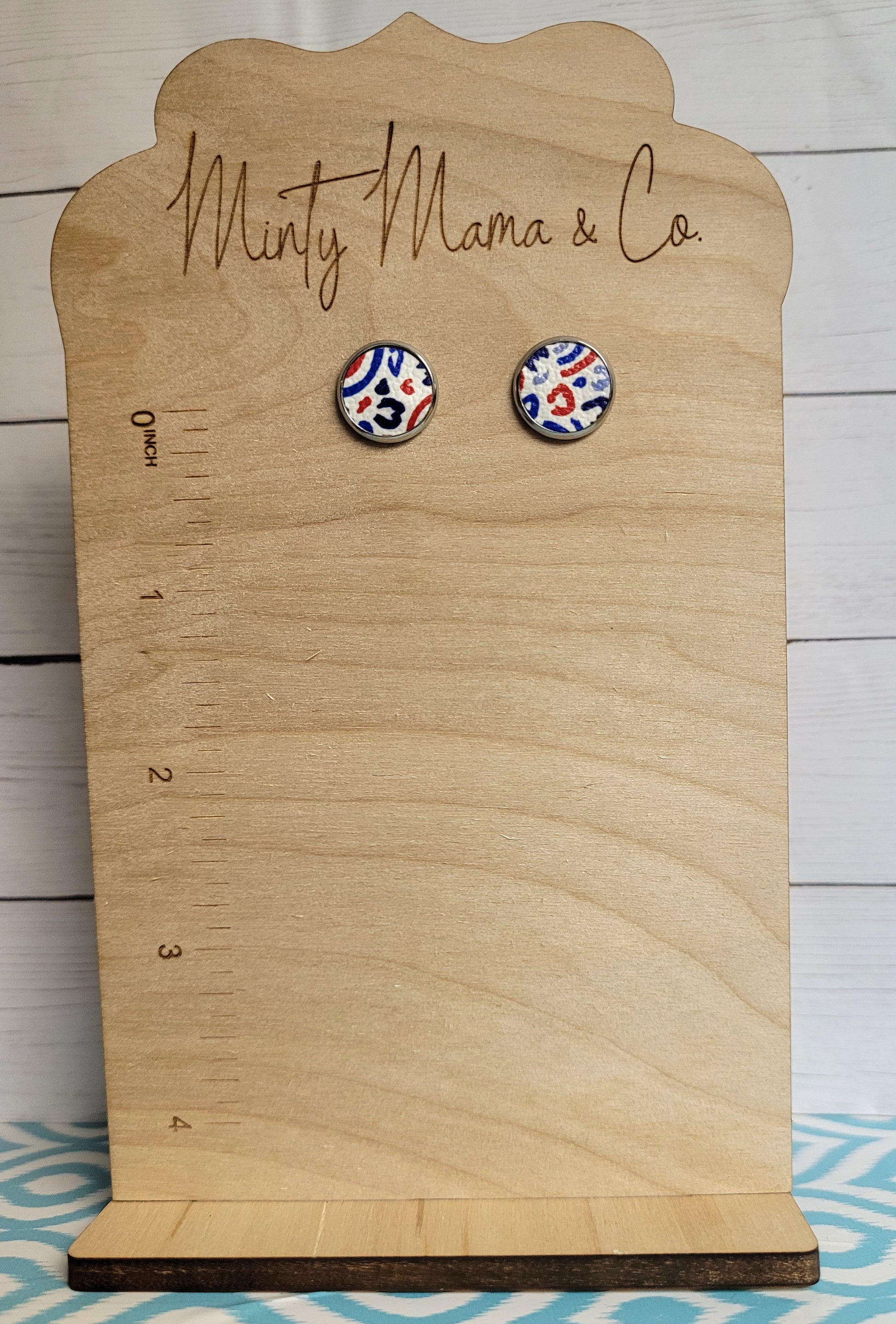 Stud Earrings are made with: stainless steel, available in 8mm, 10mm, and 12mm options.