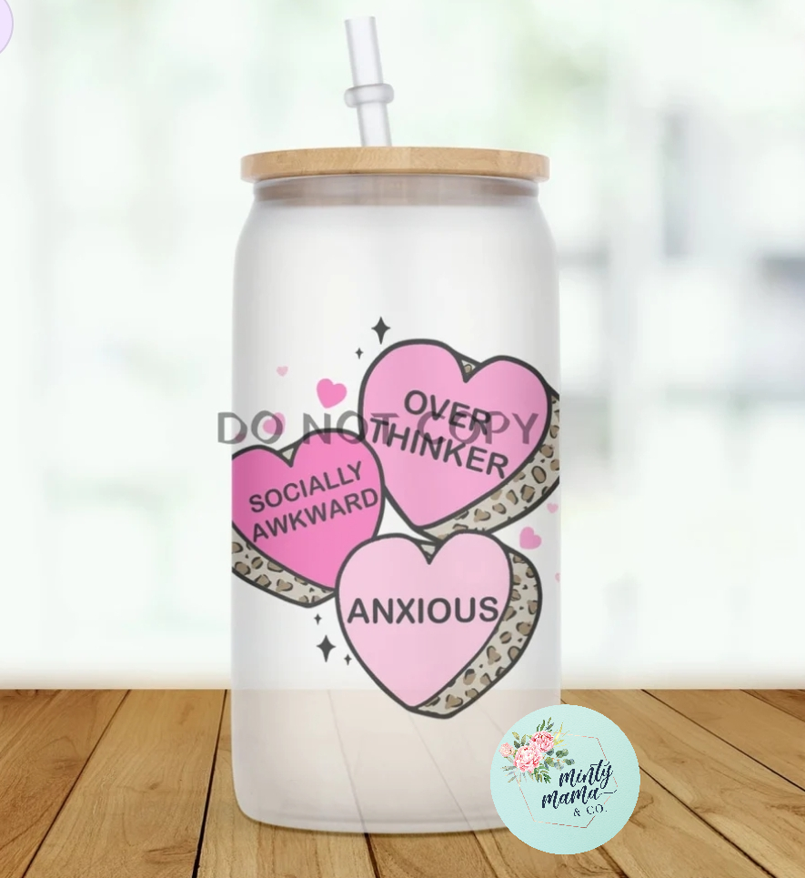 Glass Can Tumbler:: Anxious Hearts