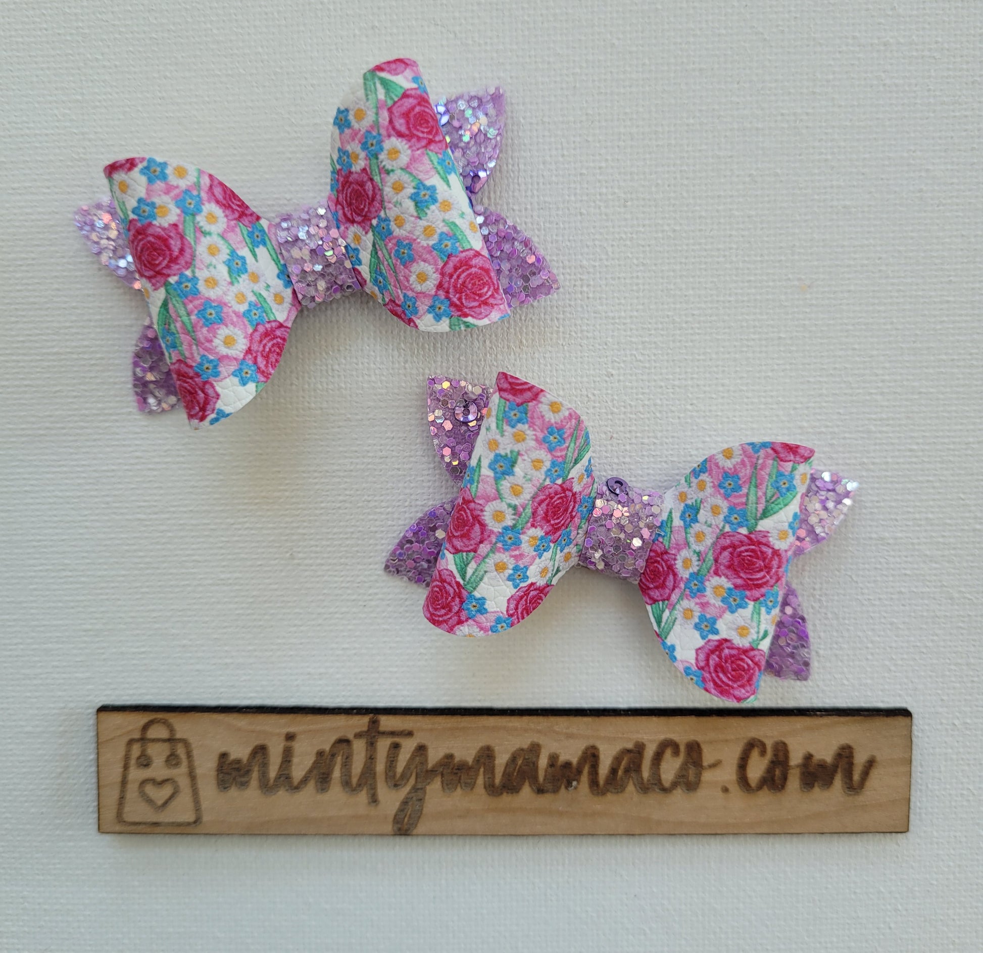 Made with textured faux leather and glitter canvas. **Comes with one itty bitty bow, buy 2 for sweet piggies!**