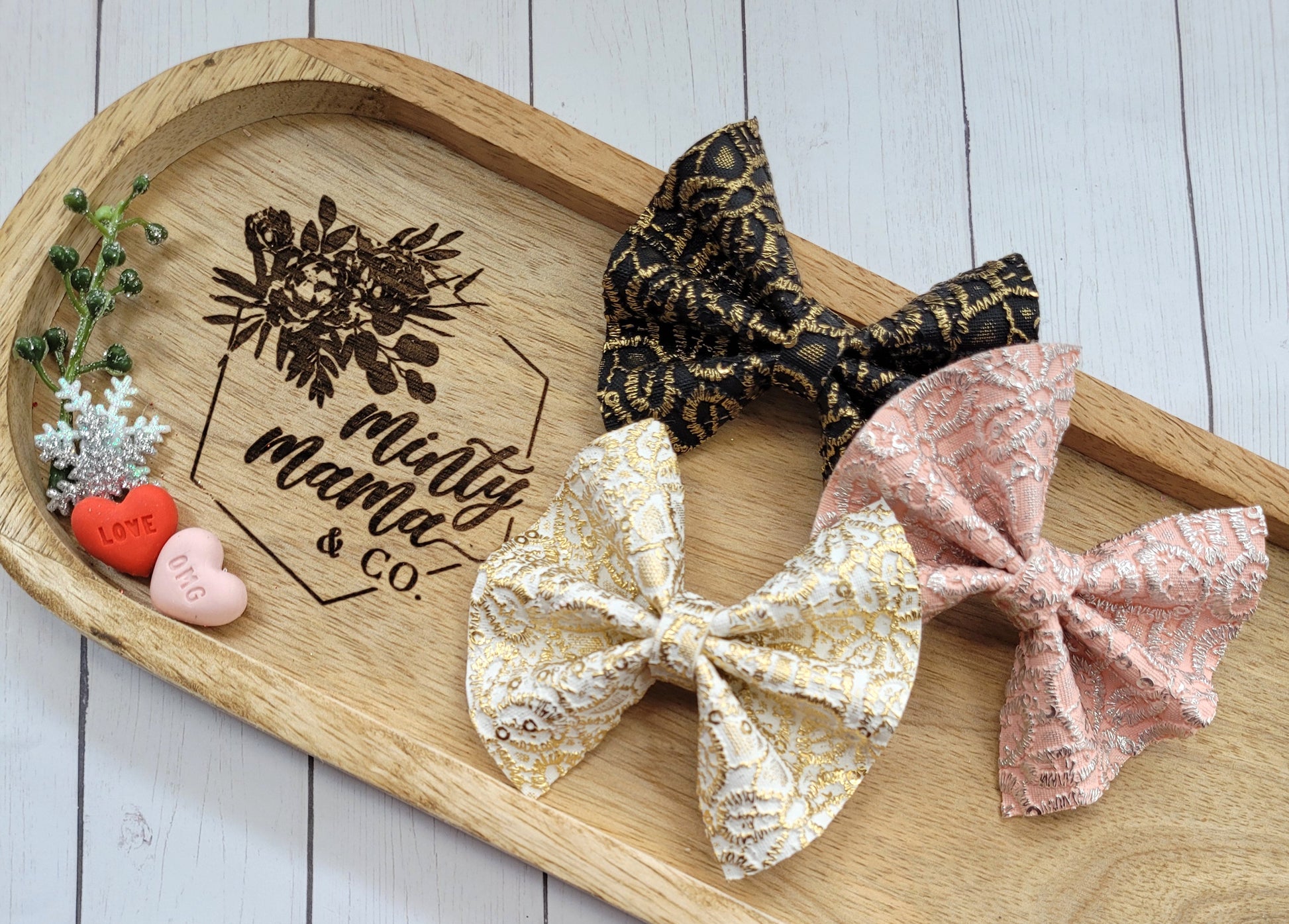 **Please note, all bows are handmade to order: each bow is handmade of quality material after order is made, thus slight variations will occur and bows may differ slightly from photo due to positioning of patterns**